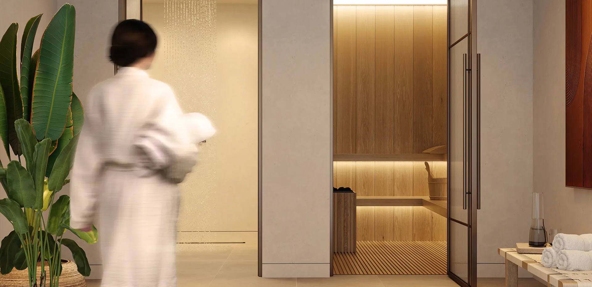 Resident Facilities (Frameworks): Exclusive to residents: coworking spaces, wellness & spa, lounges, screening room, rooftop bar.