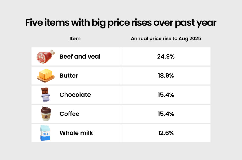 The UK’s inflation rate remained at 3.8% in August, unchanged from July, but soaring food prices continue to squeeze household budgets. According to official data, the cost of food and non-alcoholic drinks rose by 5.1% year-on-year, with beef, butter, milk, and chocolate seeing the steepest increases.
